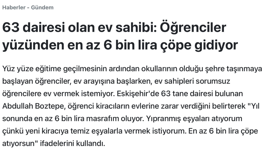 Fatih Evcin 17 Eylül 2021 Paylaş 17 Eylül 2021 Ali Gök yazdı: allah yardımcısı olsun herkesin. ev arayan yurt arayanlara özellikle kolaylıklar dilerim rakamlar arşı aşmış durumda. Gerçekten Allah kolaylık versin. Şaşkınlıkla takip ediyorum. 2 tane yakın abimin çocuğu Biri Maramara üni göztepe kazandı , diğeri Gebze teknik. üniv. kazandı. ikisi de ev aldı mecburen. 1+1 350.000 gibi bir para ödendi. Yorum bağlantısı