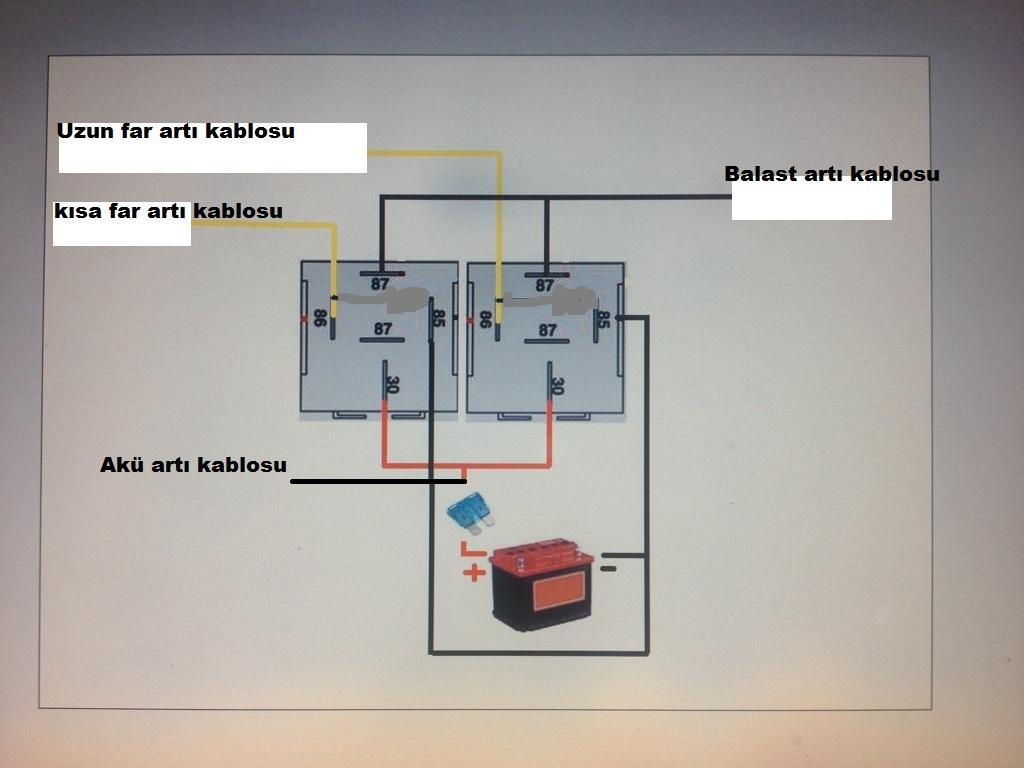 Oktay Toker 1 Mayıs 2017 Paylaş 1 Mayıs 2017 (düzenlendi) Orijinal xenon aydınlatma sisteme geçince oluşan ve genelde Avrupa ece normunda çalışan far sistemlerinde arıza ışığına paralel aküden direkt besleme ile sonuç alan araçlarda ve Dogu blok araçlarda yaşanan ampul çıkınca oem xenon blast takılması ile oluşan voltajı kesen kontrollü far yapılarında her far için ayrı olarak uzun ve kısa far yapısını direkt aküden besleyerek sorunsuz çalışmasına olanak saglayan role şeması.İsteyen aynı role şeması akü tarafına yapar ve her 2 fara dagıtır.Aküye yakın olan fardan uzun ve kısa hüzme tetik kablolaraı ve sağ tarafada uzayan kalın artı kablosunuda çekerek baglayabilirler. Şema orijinal yapısı kopyadır ve üzerinde düzeltme yaparak yeniden çizim ve baglantılar yazılmıştır. H4 farlar içinde kullanılabilir. İsteyen her roleyi 40 amper veya üzeri ve istediği markayı kullanabilir.4 bacaklıda olabilir lakin 4 bacaklıda dikkat edilecek olan açık kontaklı olması. Lakin şeffaf içinde yeşil led olan role serisi tavsiyemdir.Yeşil led bobin arası diod ile koruma amacınıda bir nebze yerine getirmesinden dolayıdır. 1 Mayıs 2017 tarihinde Oktay Toker tarafından düzenlendi Yorum bağlantısı