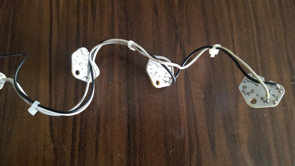 Oktay Toker 1 Ocak 2017 Paylaş 1 Ocak 2017 Öncelikle resimde işaretlediğim kısımlar birbiri ile kısa devresi varmı yokmu tespit lazım.Var ise birbirinden baglı olan yolları kesilecek.Ledler yerine takılacak ve kagıda döktüğünüz şemadaki gibi 3 erli seri ve paralel işlemle baglayacaksınız.Her 3 erli seri sonrasında artı ucuna 390ohm çeyrek watt direnç ekleyip her 3 erli seriye aynı direnç ve direncin boşta kalan uçlarınıda birleştirip sinyal artısı verilecek. Buradan anlatımı ancak bu şekilde yapabilirim. Sinyal verirken beyaz ledleri söndürmek içinde öylsine resmetmeye çalıştığım bu şema uygulanacak. 1 Yorum bağlantısı