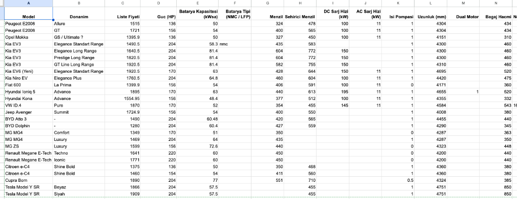Gökhan Tuna 10 Aralık 2024 Paylaş 10 Aralık 2024 Hafta sonu hazirladigim ufak bir tablo var, buraya ekran goruntusu olarak yapistirayim, henuz tam degil gordugunuz gibi; ancak benim de kasintim tutuyor; daha dogrusu eve ikinci bir araba gerekecek gibi gozukuyor; ozellikle sehirici kullanimlari icin.. Her an ben de Cenk Hocam gibi baslik acabilirim :-) ama acmayadabilirim; bilemiyorum... Mehmet Göktürk yazdı: olabilirdi ama tesla oldu. geldi geldi araç ruhsat işleri vs hazırlanıyor sanırım. LFP pillerle geliyor bu. ne yaşayacağız tam bilmiyorum. Mehmet Hocam, LFP piller daha uzun omurlu olacak deniyor; ancak tam bilemiyorum; henuz arastirma ve okuma asamasindayim. 2 2 Yorum bağlantısı