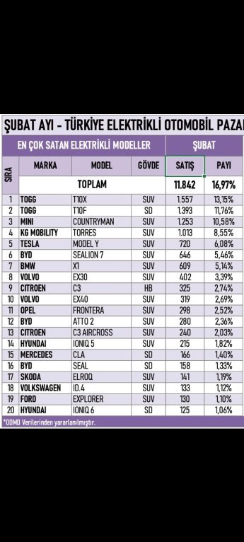 Ahmet İhsan Akşen 11 saat önce Paylaş 11 saat önce Mehmet Göktürk yazdı: Elektriklide byd atto3 de olabilir yeni kasa geldiyse Atto 2 de geldi atto3 güncel yok sanıyorum atto2 iyi fiyata verirlerse https://byd-seal.com/atto2.html Çok verimsiz bir araç atto 2. Dolphin daha iyi bir seçenek ama tutmadı tasarımdan. Birde SUV değil tabi, SUV olsun çamurdan olsuncular atto 2 yi 1. Yaptılar geçen ay. Bende evde şarj imkanı olduğu için EV derim. T10F alırdım imkanım olsa. Yorum bağlantısı